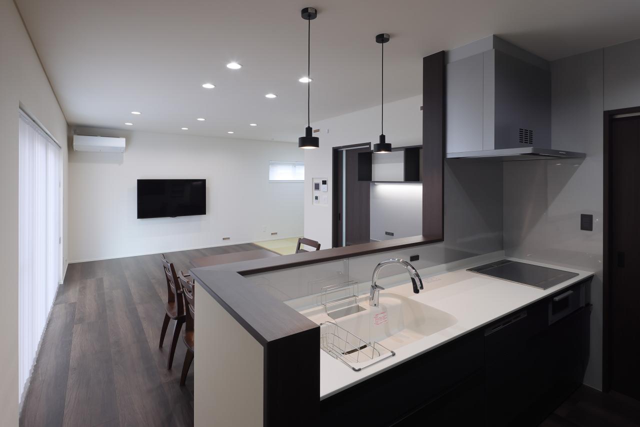 シックな1階、キッズの2階、家族をつなぐ頼れる家。